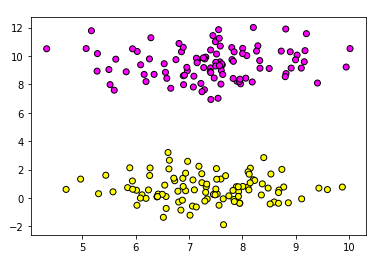 plt.scatter(X[:,0], X[:,1], c=y, cmap=plt.cm.spring, edgecolor = 'k')