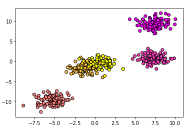 plt.scatter(X2[:,0],X2[:,1], c=y2, cmap=plt.cm.spring, edgecolors='k')