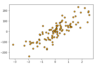 plt.scatter(X,y,c='orange',edgecolors='k')