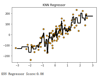 print("KNN Regressor Score:{:.2f}".format(reg.score(X,y)))