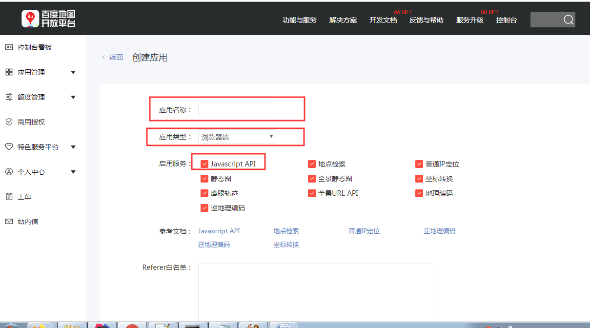 注册成功后点击<应用管理>菜单,选择<创建应用>,创建自己的应用,成功后会生成ak,拿着这个ak去代码中实现获取地址功能;