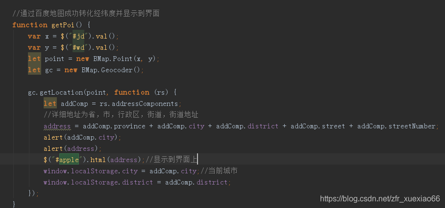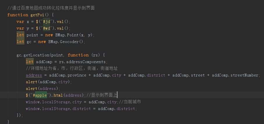 //通过百度地图成功转化经纬度并显示到界面