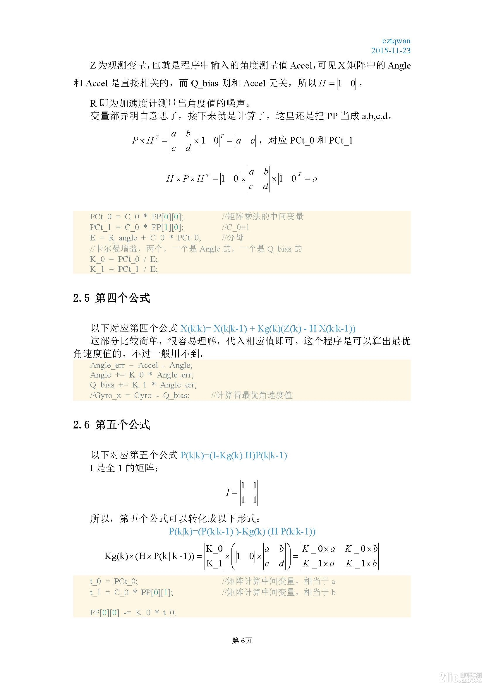 K_0 = PCt_0 / E; //卡尔曼增益,两个,一个是Angle的,一个是Q_bias的