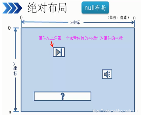 //设置容器布局为绝对布局,即组件的摆放不受任何限制