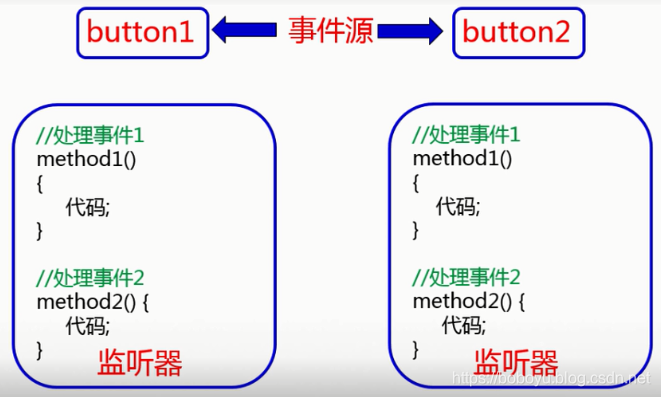 - 2.不同事件源共用一个处理方法,如上button1和button2共用了一个处理方法