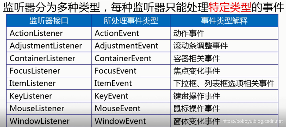 - 使用匿名类传入到添加监听器的方法中又保证了一个监听器对象不能被其他组件复用,每个组件有各自独立的监听器对象