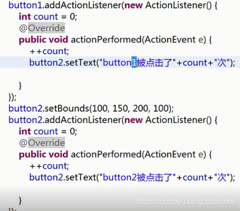 frame.button2.setText(button_Name + "被点击了" + count + "次");