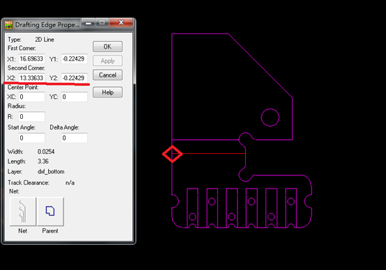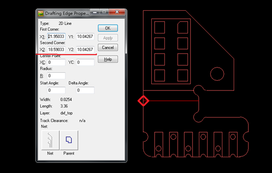 8、 dxf_top文件中选取一个特殊点,记录坐标。