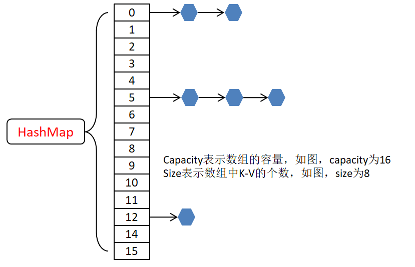 在HashMap中,有两个比较容易混淆的关键字段:size和capacity ,这其中capacity就是Map的容量,而size我们称之为Map中的元素个数。