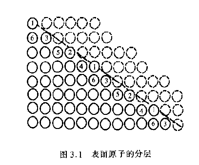补充一点,之前提到的原子分层一直不太理解,直到见到了下面这张图。如图中第一层若被移去,则第六层成为表面原子。