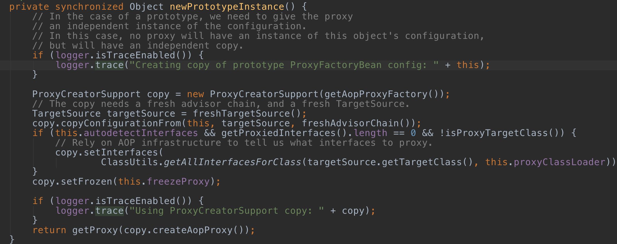 原型的是每次连ProxyCreatorSupport都是新生成的,然后在createAopProxy,最后getProxy即可。