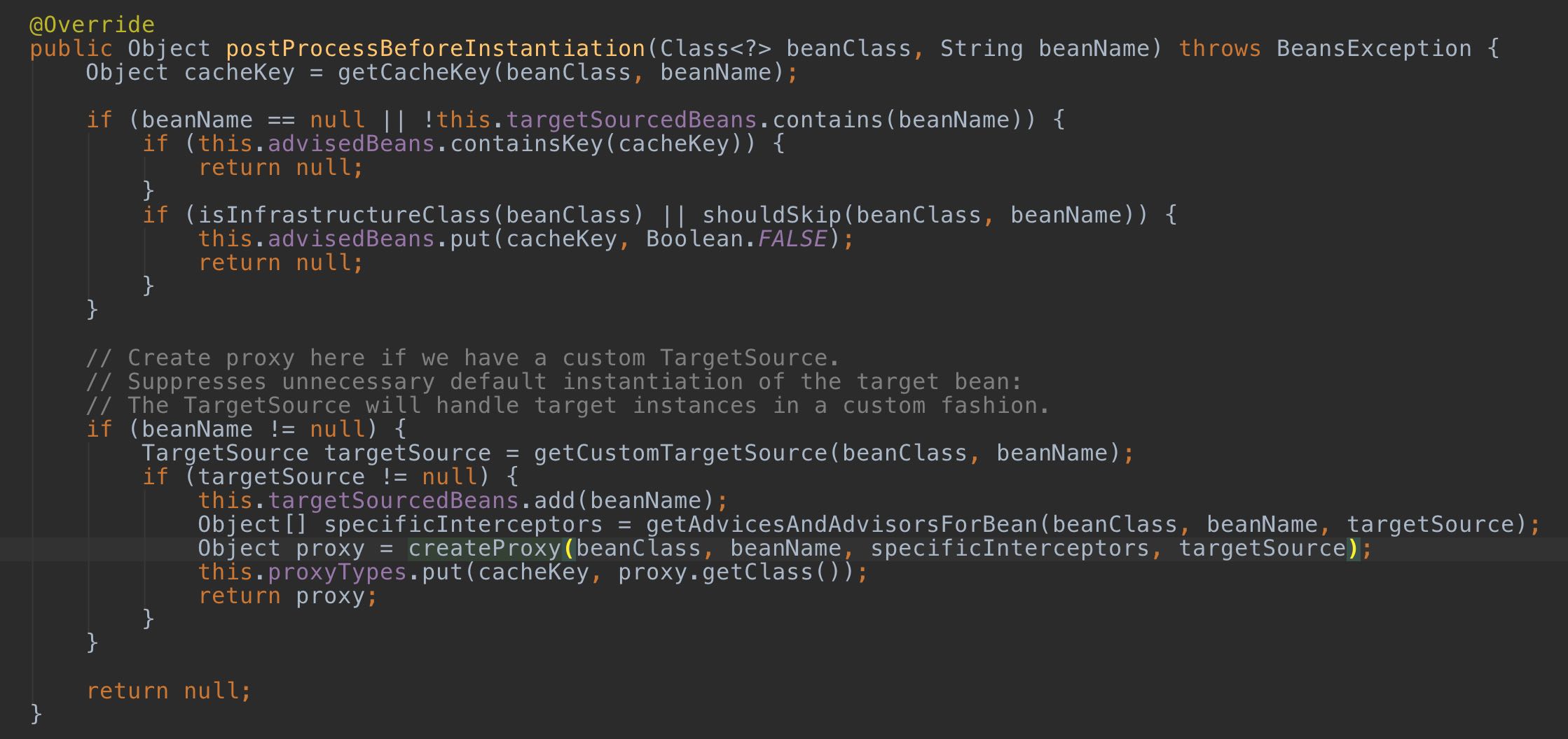 AbstractAutoProxyCreator实现了BeanPostProcessor的postProcessBeforeInstantiation