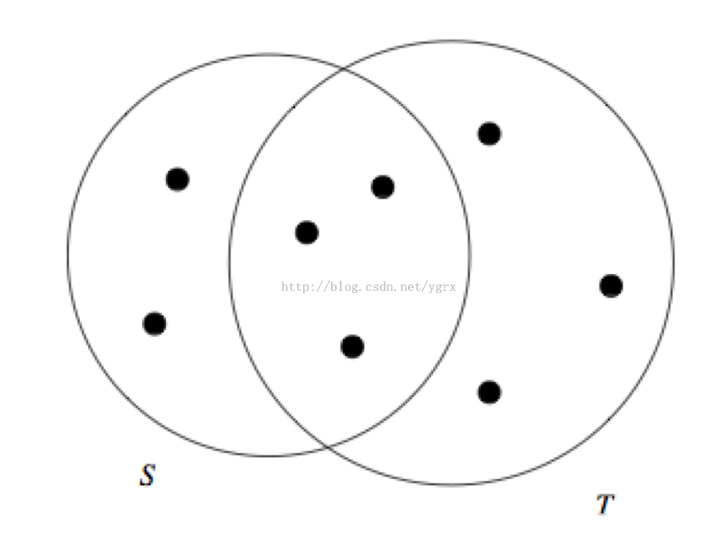 JaccardSimilarity说起来非常简单,容易实现,实际上就是两个集合的交集除以两个集合的并集,所得的就是两个集合的相似度,直观的看就是下面这个图。