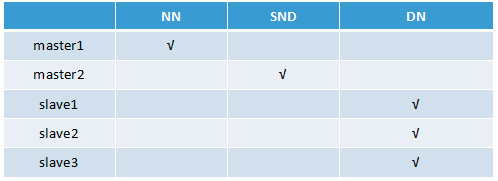 本文章介绍大数据平台Hadoop的分布式环境搭建、以下为Hadoop节点的部署图,将NameNode部署在master1,SecondaryNameNode部署在master2,slave1、slave2、slave3中分别部署一个DataNode节点