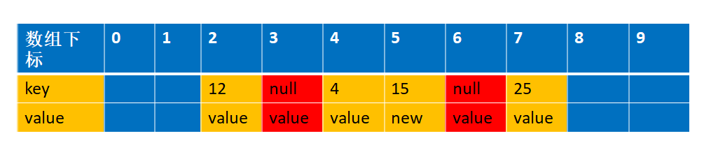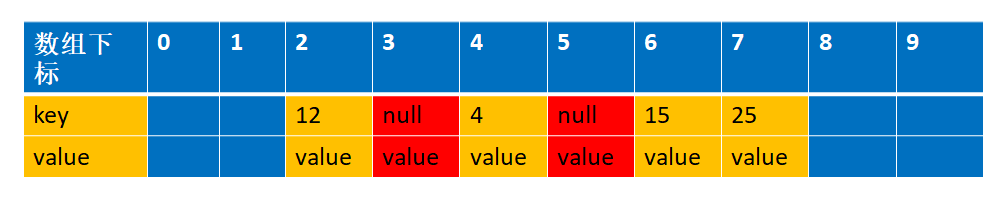 这个时候h=6,并把k=25 的值移到index=6 的位置上,同时设置index=7 为空,如下图