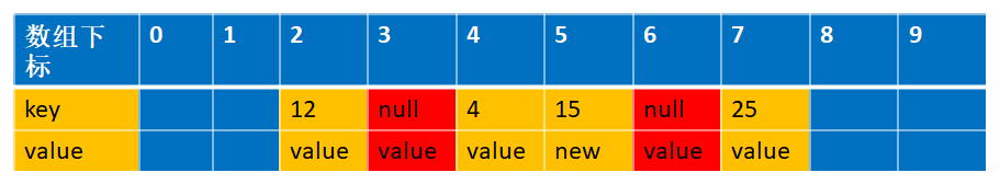 //为什么要这样做呢?主要是开放地址寻找元素的时候,遇到null 就停止寻找了,你前面k==null