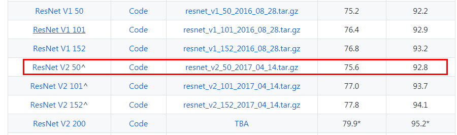 官方下载地址:https://github.com/tensorflow/models/tree/master/research/slim#Pretrained