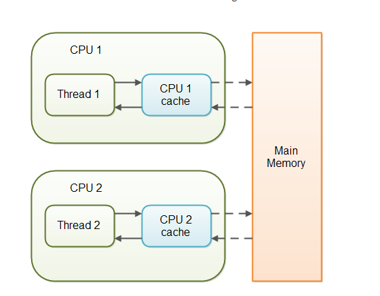 当对非 volatile 变量进行读写的时候,每个线程先从内存拷贝变量到CPU缓存中。如果计算机有多个CPU,每个线程可能在不同的CPU上被处理,这意味着每个线程可以拷贝到不同的 CPU cache 中。