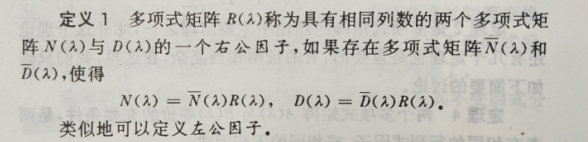 二、多项式矩阵的最大右公因子(最大左公因子)的定义: