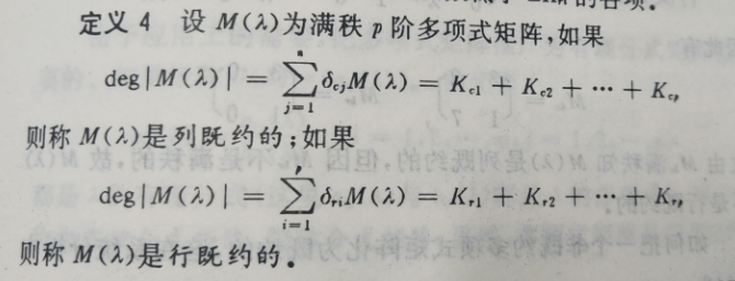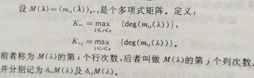 列既约与行既约的定义:(这里的 deg|M(λ)| 为所求行列式的最高次数项)
