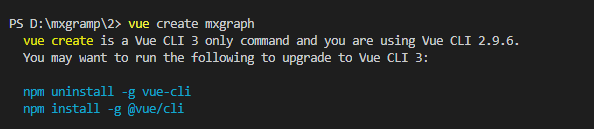 当你输入一个命令时可能会提示vue create is a Vue CLI 3 only command and you are using Vue CLI 2.9.6.如下情况