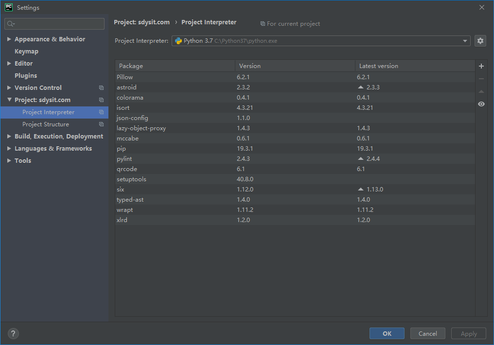 - System Interpreter: 可添加直接在系统中安装的Python解释器