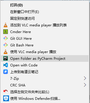 如果在安装的时候选择了【Add “Open Folder As Project”】,恭喜你,你获得了创建工程最简单的方式!只需要在要创建工程的目录上,点击右键,选择【Open Folder As PyCharm Project】,就大功告成了。