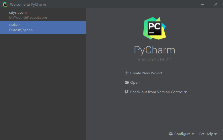 取消右侧被圈出的选项,PyCharm再启动时就不会再自动打开上次的工程了,而是打开了下面的对话框: