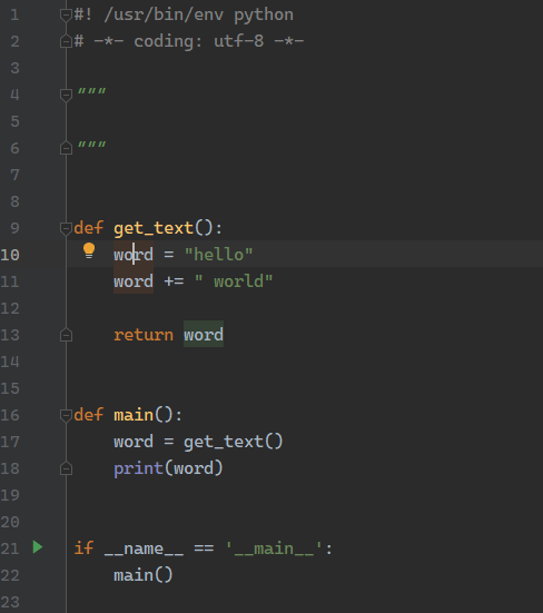 如果是工程的主文件,还需要有main函数等,所以一般空的Python文件是这样的: