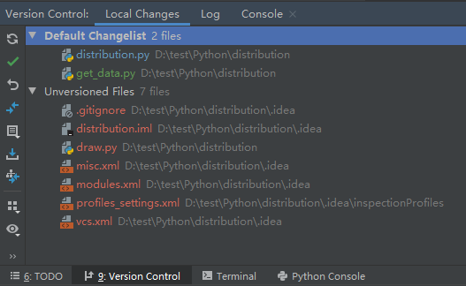 还可以在PyCharm下方的【Version Control】窗口中查看所有修改过的和没有添加到管理的文件列表:
