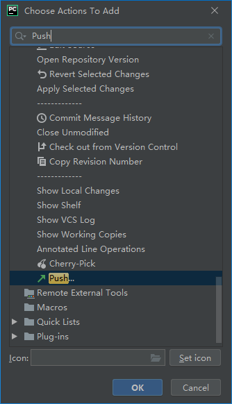 PyCharm默认的工具栏上没有推送按钮,我们可以添加上。