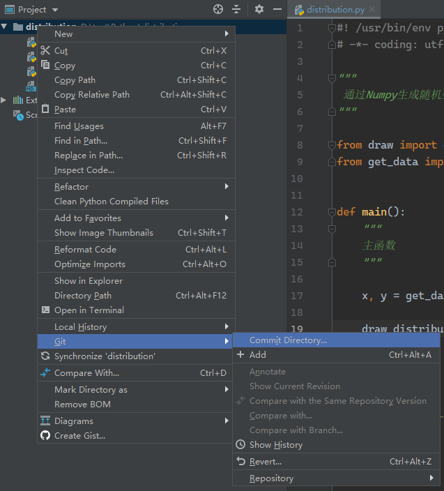 想要提交文件到服务器,可以在工程树上点击,选择【Git】->【Commit Directory】
