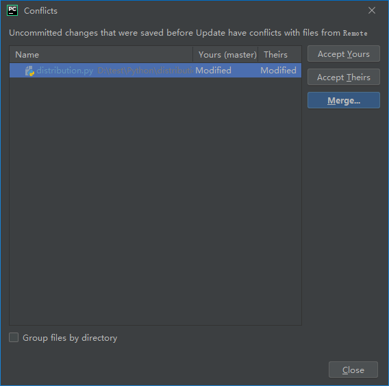 你可以慎重的选择【Accept Yours】(用你的代码覆盖别人的)、【Accept Theirs】(用别人的代码覆盖你的),最安全的是选择【Merge】: