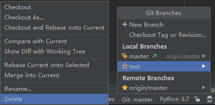 点击上图中的【Delete test】,或在右下角点击test分支,选择【Delete】