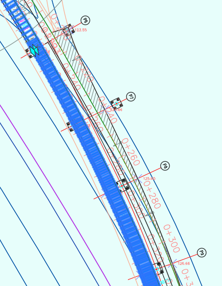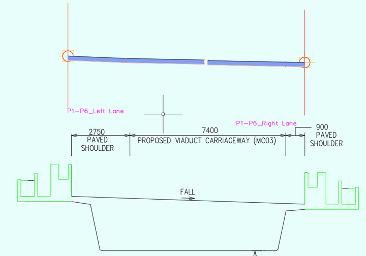 从P30开始以后,又有路肩又有车道。但是路肩没有elevation target,不能通过给定的设计高程确定其高度,也不知道坡度;有elevation target的车道没有设计高程。关于这个问题,我们的小伙伴@朱雀酣眠