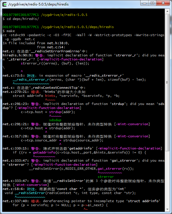 解决:把hiredis目录删除,去GitHub下载新的替代出问题的。https://github.com/redis/hiredis
