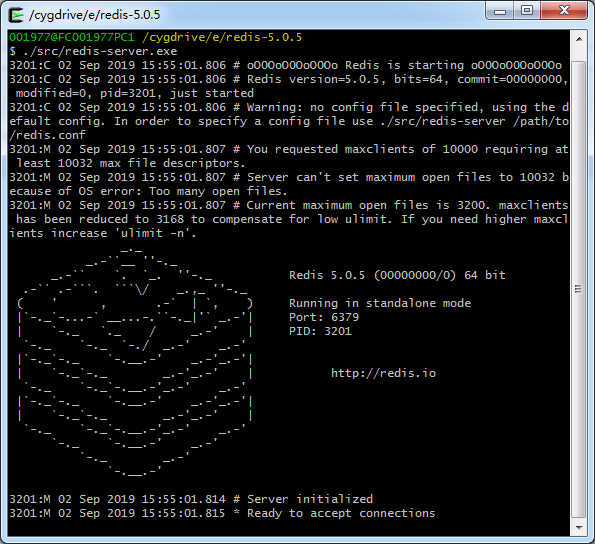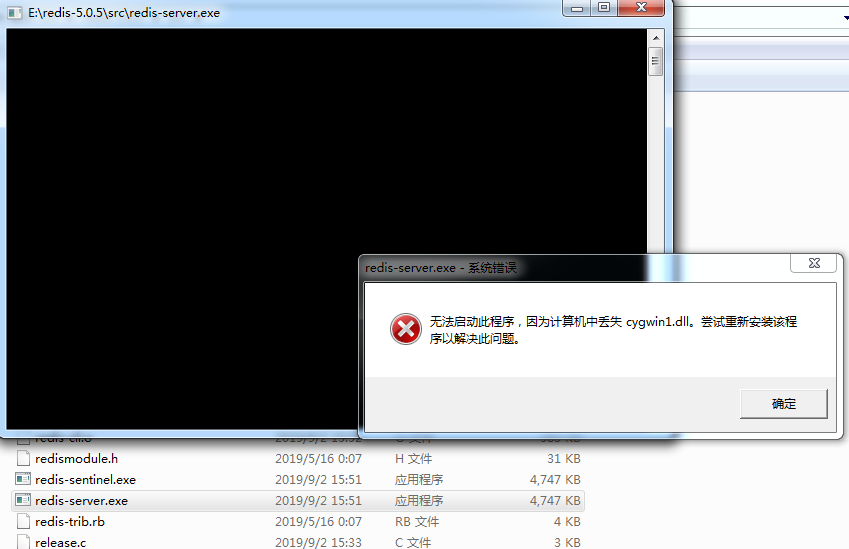 但是有个问题哦,也就是说:我编译这个东西的初衷就是,让编译好的Redis能直接在Windows上启动,而利用Cygwin64编译的,只能通过Cygwin64命令行来启动。下面是我直接打开redis-server.exe: