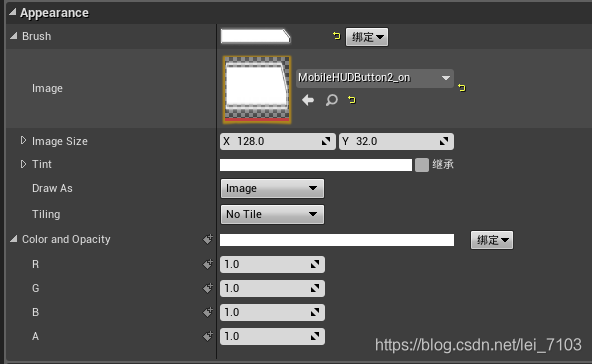 一、将Image拖拽至CanvasPanel下调整大小,并选中Image,细节面板的Appearance下的Brush选择一张图片