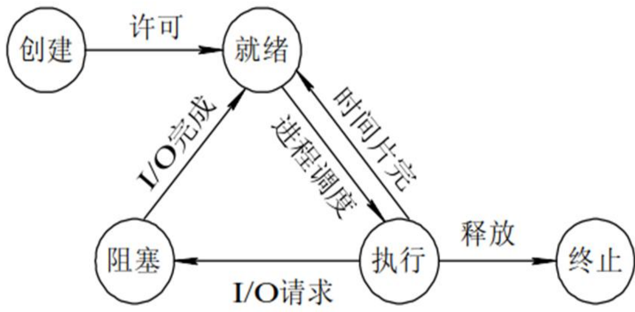 行状态变为阻塞状态,如发生了I/O请求 - 阻塞——>就绪:进程所等待的事件已经发生,就进入就绪队列