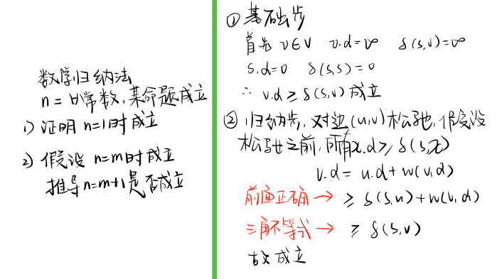 证明上界引理:任意次松弛操作v.d≥δ(s,v)且v.d=δ(s,v)后不会变小