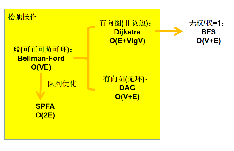 后面的Dijkstra、Bellman-Ford、DAG都会使用init_single_source(G,s),然后重复的对边进行Relax(u,v,w)。不同之处在于Dijkstra和DAG对每条边仅松弛一次,而Bellman-Ford对每条边松弛|V|-1次