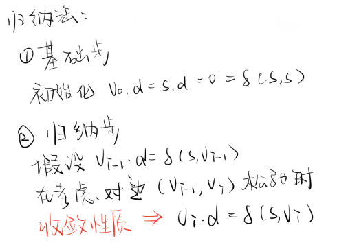 证明收敛性质:s~>u->v是一条最短路径,如果送至(u,v)之前有u.d=δ(s,u),那么松弛(u,v)之后有v.d=δ(s,v)