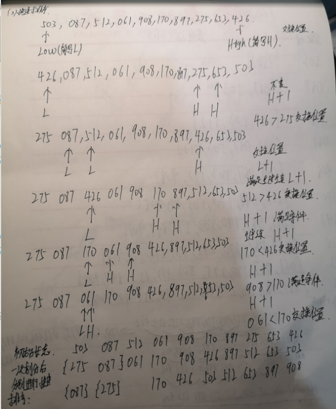 以关键字序列{503,087,512,061,908,170,897,275,653,426}为例,手工执行以下排序算法,写出每一趟排序结束时的关键字状态。 (1)直接插入排序 (2)希尔排序(增量序列为5,3,1) (3)快速排序 来源:CSDN作者:mez_Blog链接:https://blog.csdn.net/mez_Blog/article/details/103551257 标签 大数据 排序算法 数据结构 快速排序 blog 希尔排序