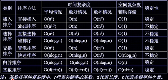 1)当n较大,则应采用时间复杂度为O(nlog2n)的排序方法:快速排序、堆排序或归并排序序。