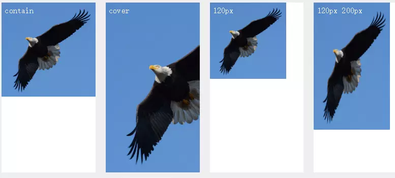 auto以背景图片的比例缩放背景图片cover缩放背景图片以完全覆盖背景区,可能背景图片部分看不见。和contain值相反contain缩放背景图片以完全装入背景区,可能背景区部分空白