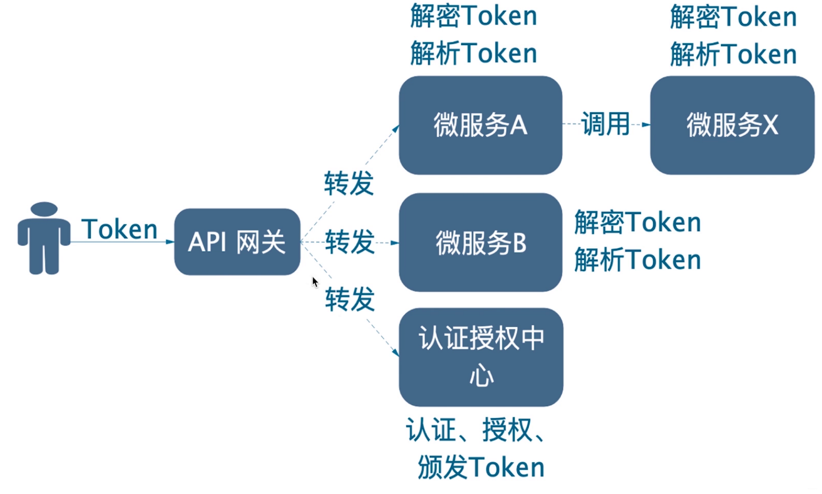 这样降低了网关的设计复杂度,网关不再关注用户是谁了(不再解密解析token),只负责转发