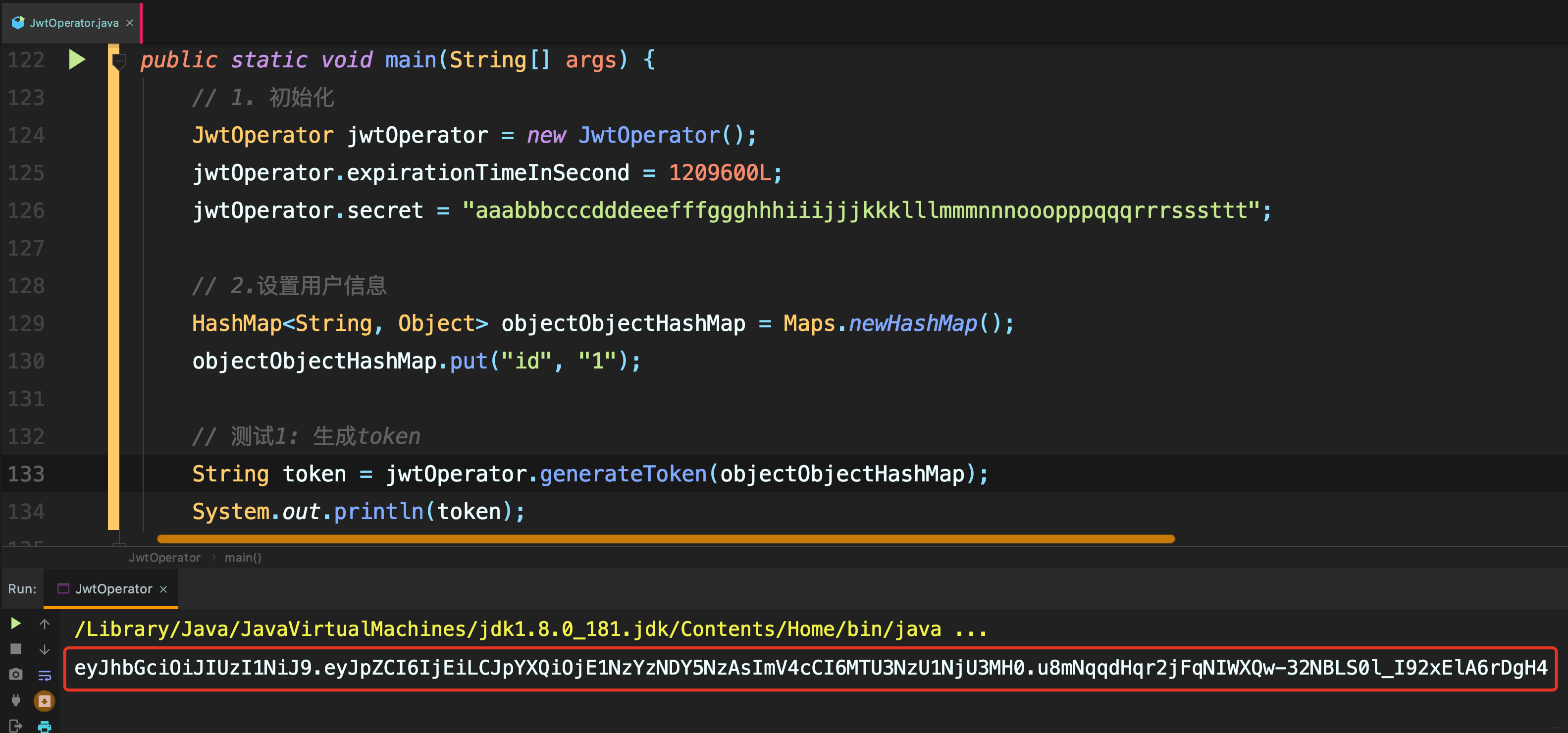 引入工具类后生成的JWT,并新建JWT操作类,并简单测试生成JWT