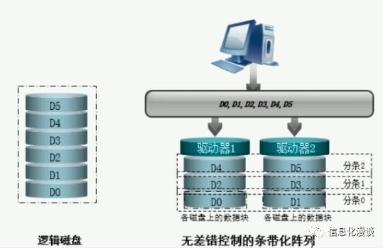 1、Raid0写入、读取速度最快:将数据分别写入不同的磁盘,将D0至D5的数据并行写入磁盘。缺点是不支持校验,只要一个磁盘坏,数据全部无法找回。主要应用场景:数据的缓存,如Photoshop的渲染缓存数据。两块硬盘即可支持配置。