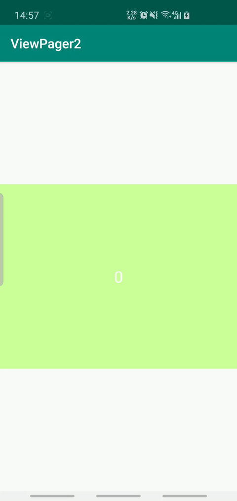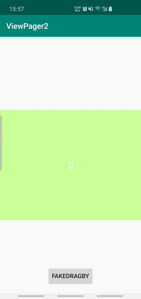 同时ViewPager2新增了一个fakeDragBy的方法。通过这个方法可以来模拟拖拽。在使用fakeDragBy前需要先beginFakeDrag方法来开启模拟拖拽。fakeDragBy会返回一个boolean值,true表示有fake drag正在执行,而返回false表示当前没有fake drag在执行。我们通过代码来尝试下: