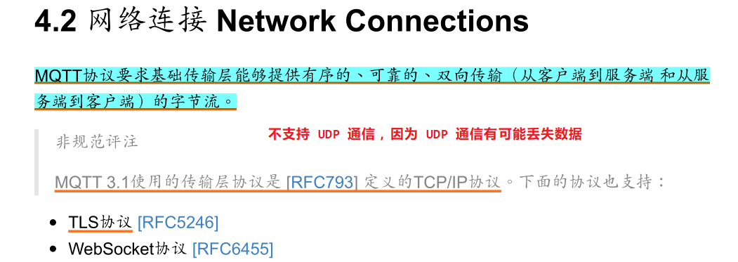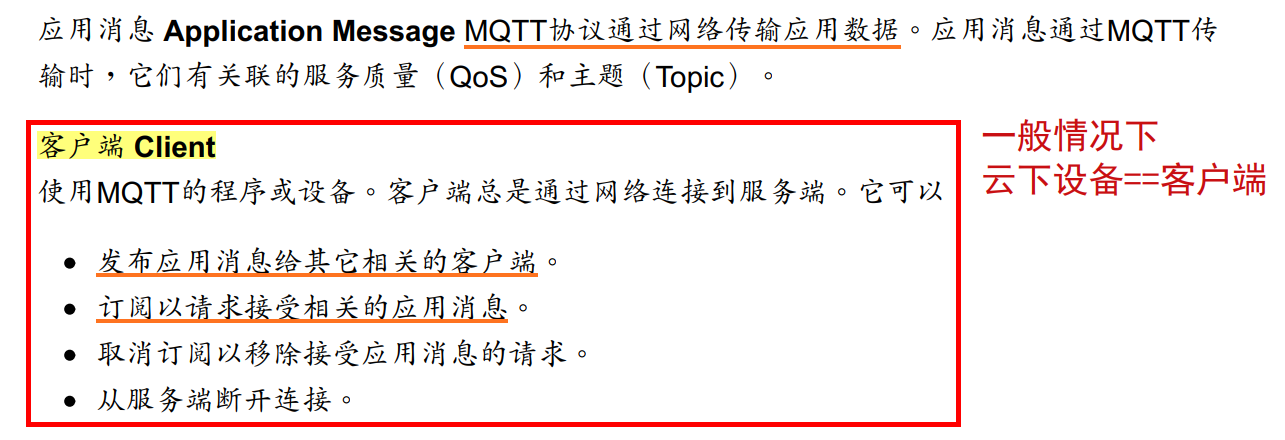 2 基于 TCP / IP 协议,建立TCP连接后,【云下设备】 【云平台】按照 MQTT 协议规定的数据格式来通信(属于应用层);